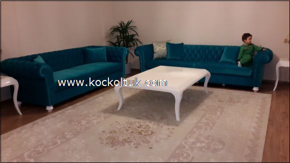 TURKUAZ KAPİTONE CHESTER KOLTUK. İskeleti Gürgen(kayın) ağaçın dan zıvanalı işçilik ile ,döşeme HR Süngerden üretilmiştir.Takımlarda tüm özellikler size özeldir.